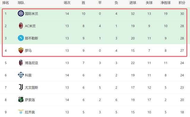 此役过后,意甲榜首又再度易主,国米在多赛一场的情况下,反超那不勒斯和AC米兰,在意甲积分榜登顶。前14轮过后,国米拿到10场胜利,在多线作战的情况下,这个成绩难能可贵。遗憾的是,赛季至今国米在意甲输给了尤文、那不勒斯和AC米兰(另外一场输给乌迪内斯),在强强对话当中,齐沃没能证明自己,如果国米本赛季想夺冠,还需要在和强队的比赛中提升表现。